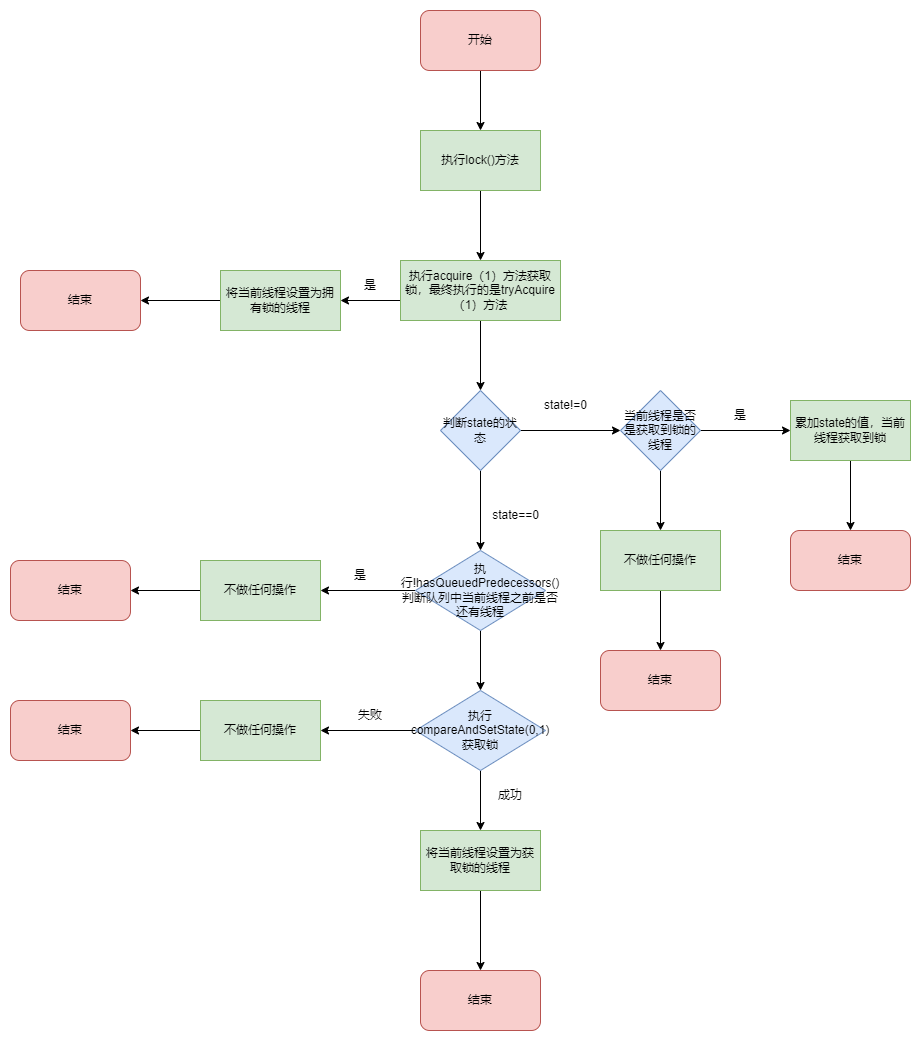 * 2. 获取不到锁的话执行acquire()方法,这个方法又会执行tryAcquire()方法,最终执行父类的nonfairTryAcquire()方法